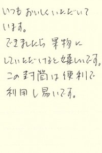 いつもおいしくいただいています。 この封筒は便利で利用し易いです。